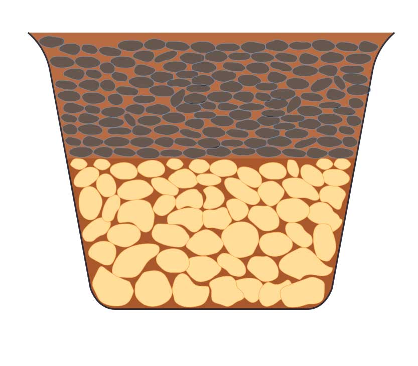 En nedsivningskanal, som vist i diagrammet, er en 'rende' fyldt med en kombination af sten, grus eller mursten, der hjælper regnvand med at blive drænet. I bunden af det grop, du graver til trampolinen, skal der laves en rende på cirka 600 mm x 600 mm x 600 mm. Fyld bunden med større sten eller mursten og med mindre sten ovenpå.