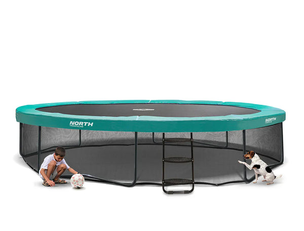 Målene i rullelisten er trampolinens udvendige mål. Komplet kantbeskyttelse.