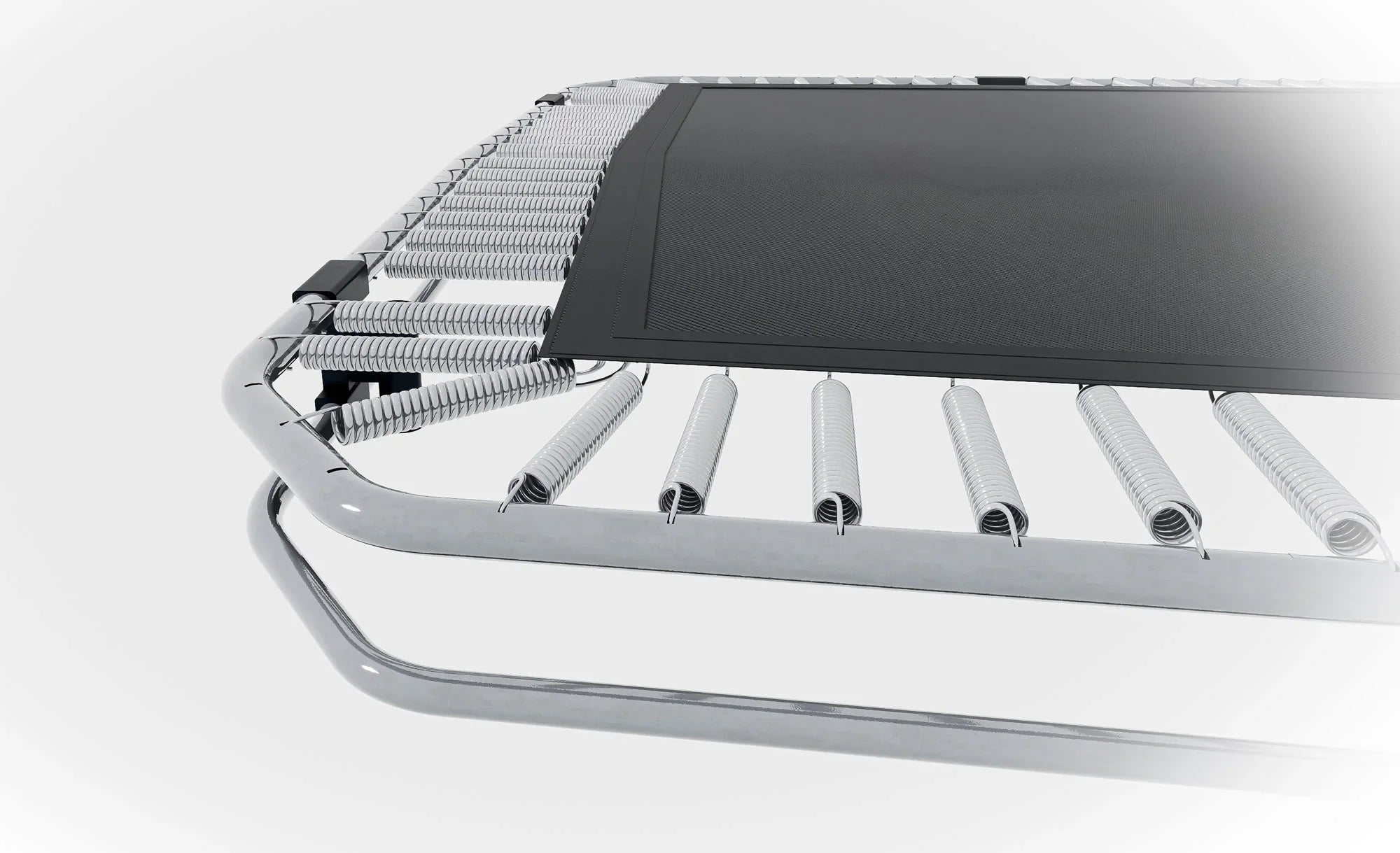 - Ingen netstænger på ydersiden af trampolinen. Hvis du allerede har dem derhjemme, ved du også, at det er en stor opgave at slå græsset omkring disse