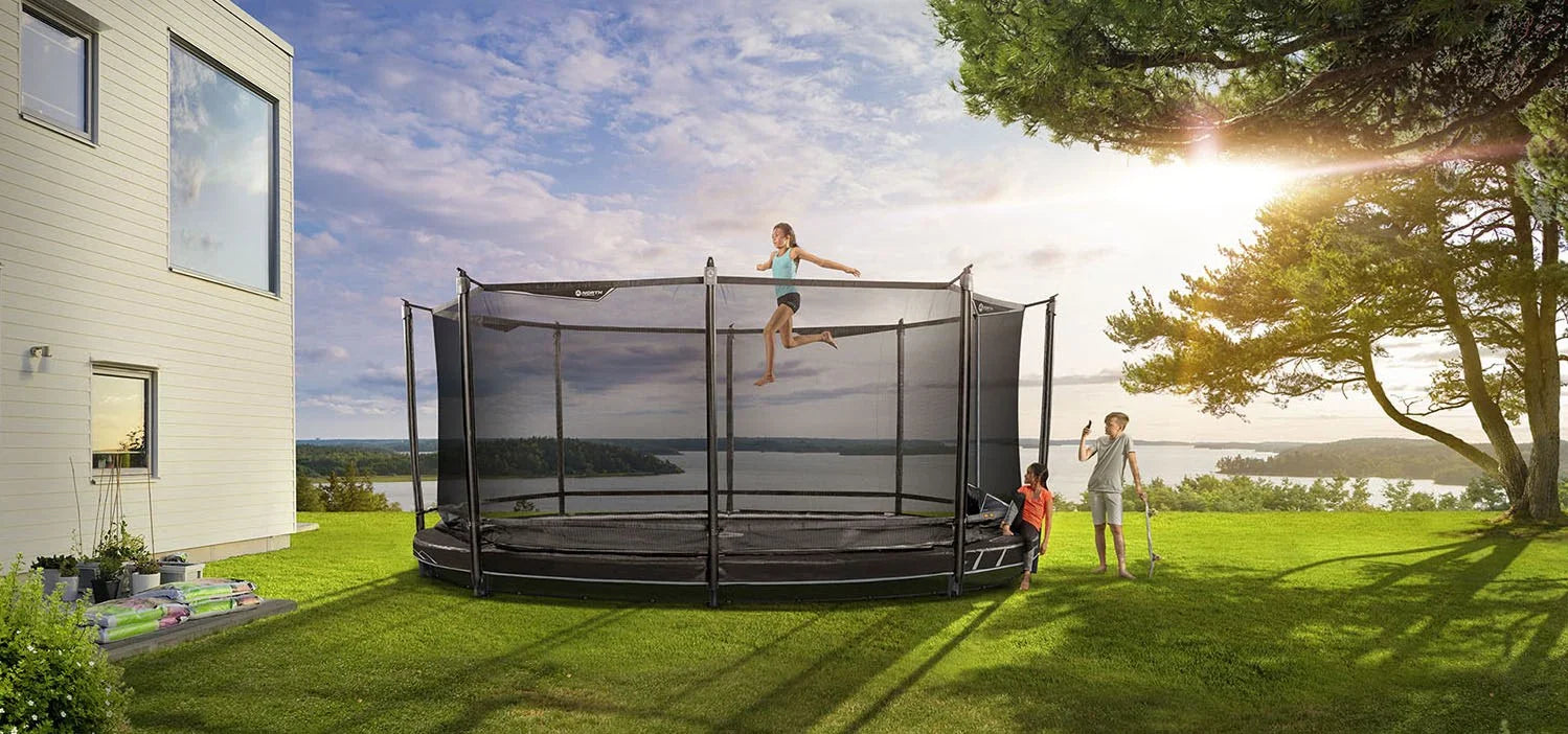 Den lave højde på den nedgravningsbare tramplin øger markant den genelle sikkerhed på trampolinen. Derudover får du også: